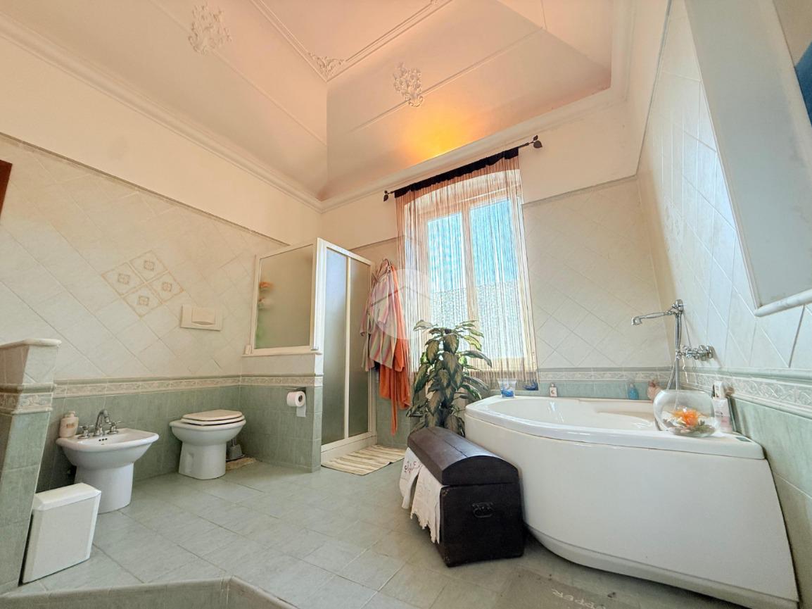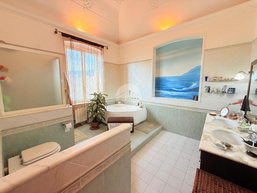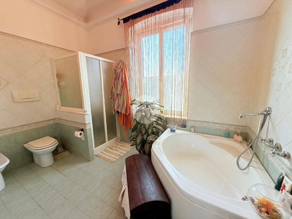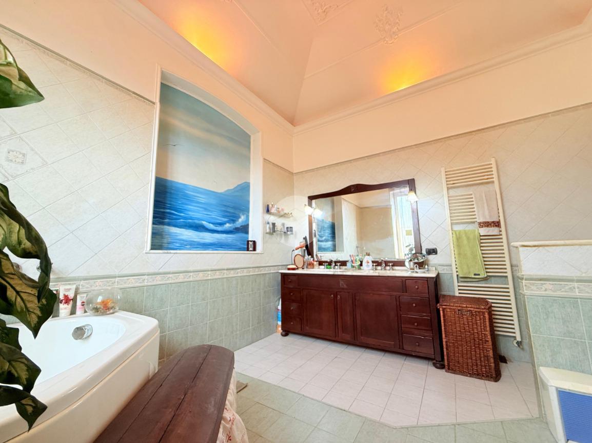 La sala da bagno (in passato adibita a camera da letto), è di notevole metratura e ospita una capitente vasca idromassaggio, un box doccia oltre che un doppio lavabo.