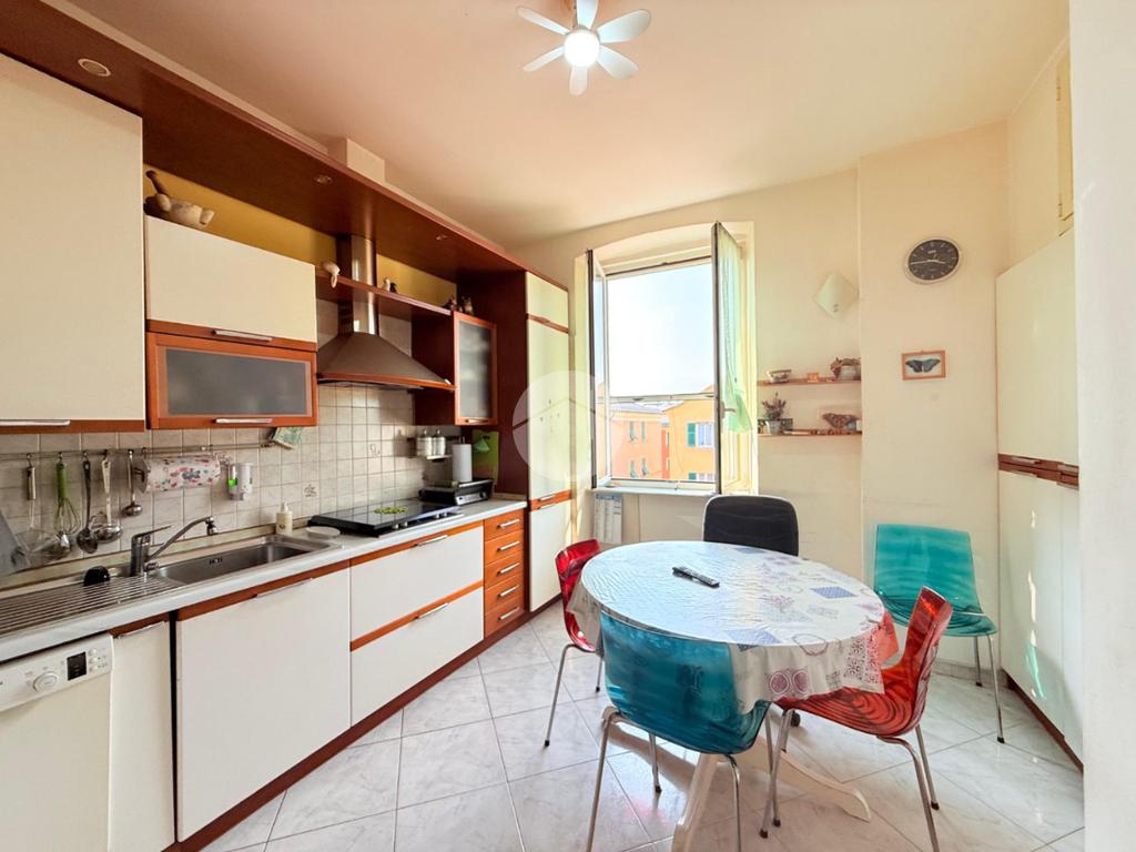 Via Caterina Rossi: in zona centrale a Sestri Ponente, comodo ad ogni servizio del quartire, proponiamo in vendita un immobile di ampi 5 1/2 vani, situato all'interno di una palazzina con parti comuni in discreto stato, posto all'ultimo piano con ascensore, l'appartamento è composto da un generoso ingresso in sala alla genovese dotato finestra a doppio vetro in alluminio.