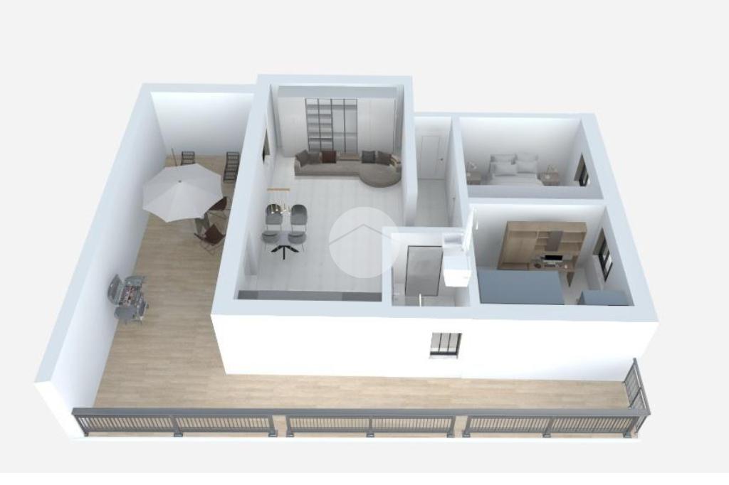 Entrando nell'alloggio tramite porta blindata, percorrendo un piccolo corridoio accediamo alla spaziosa zona giorno comprendente cucina abitabile e soggiorno open-space, il tutto reso luminoso grazie alla presenza di una finestra ed una porta finestra che concede l'uscita sul terrazzo di proprietà, idelae per trascorrere tempo libero all'aperto.