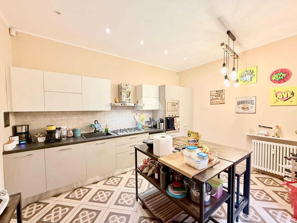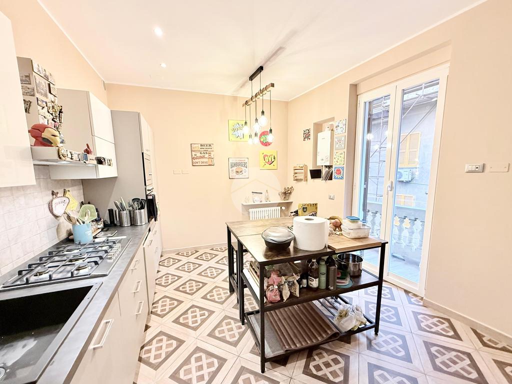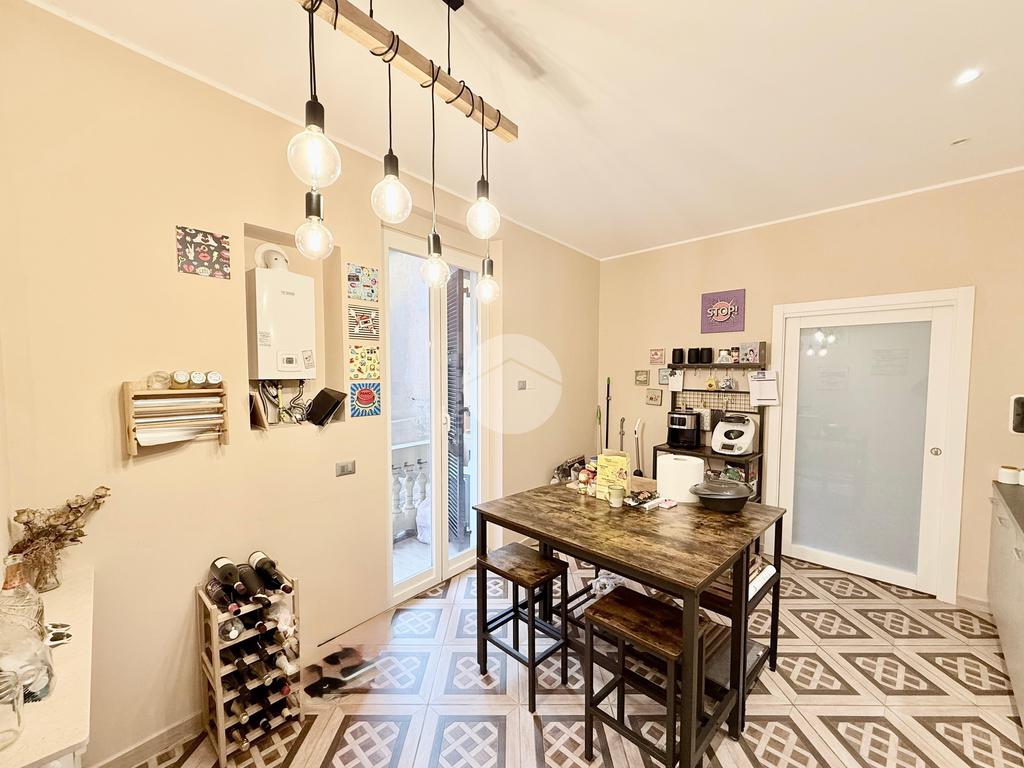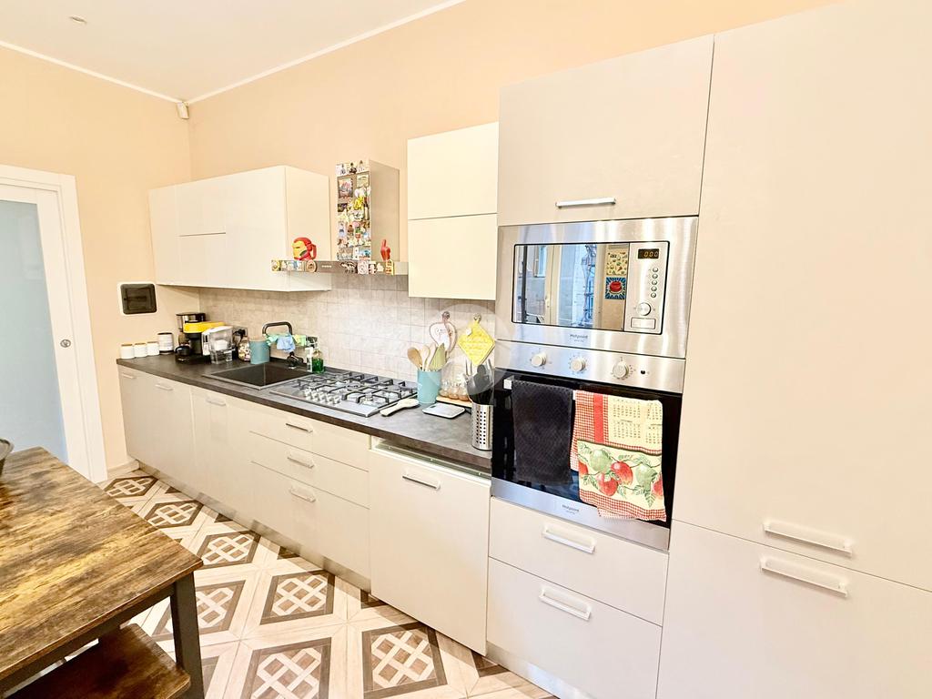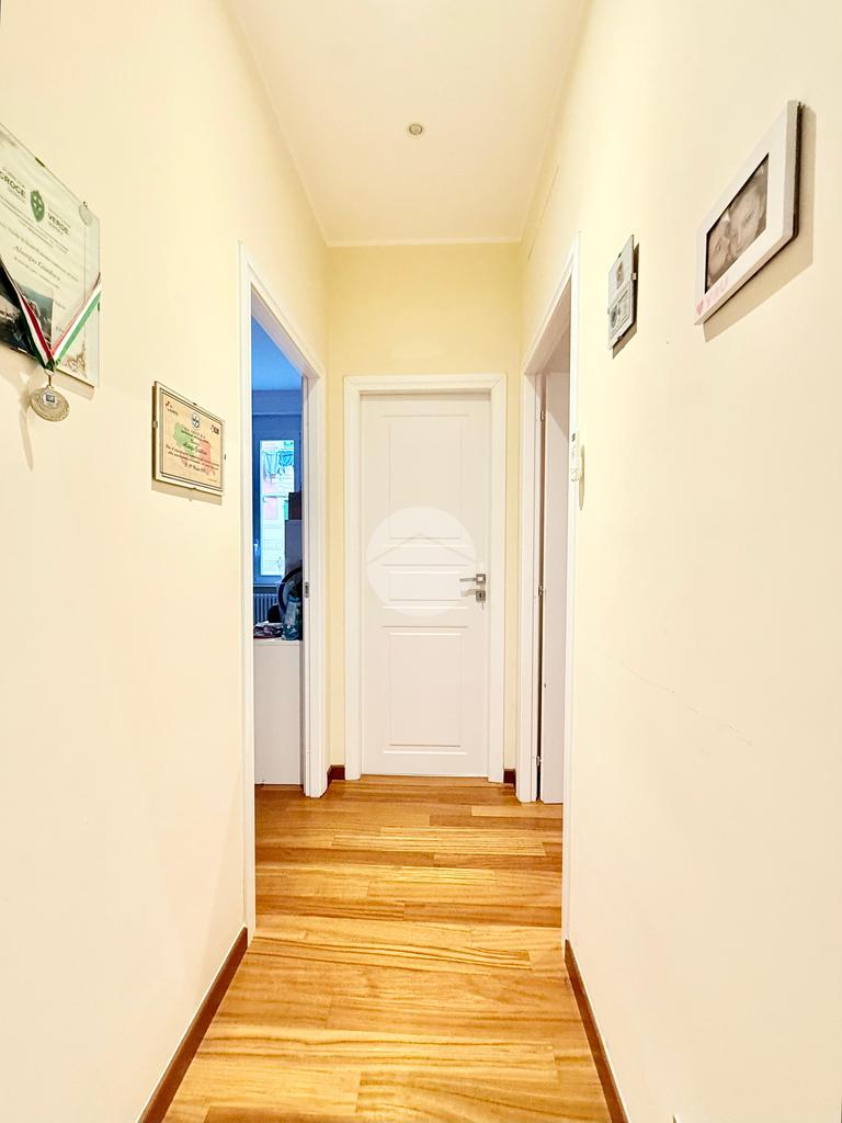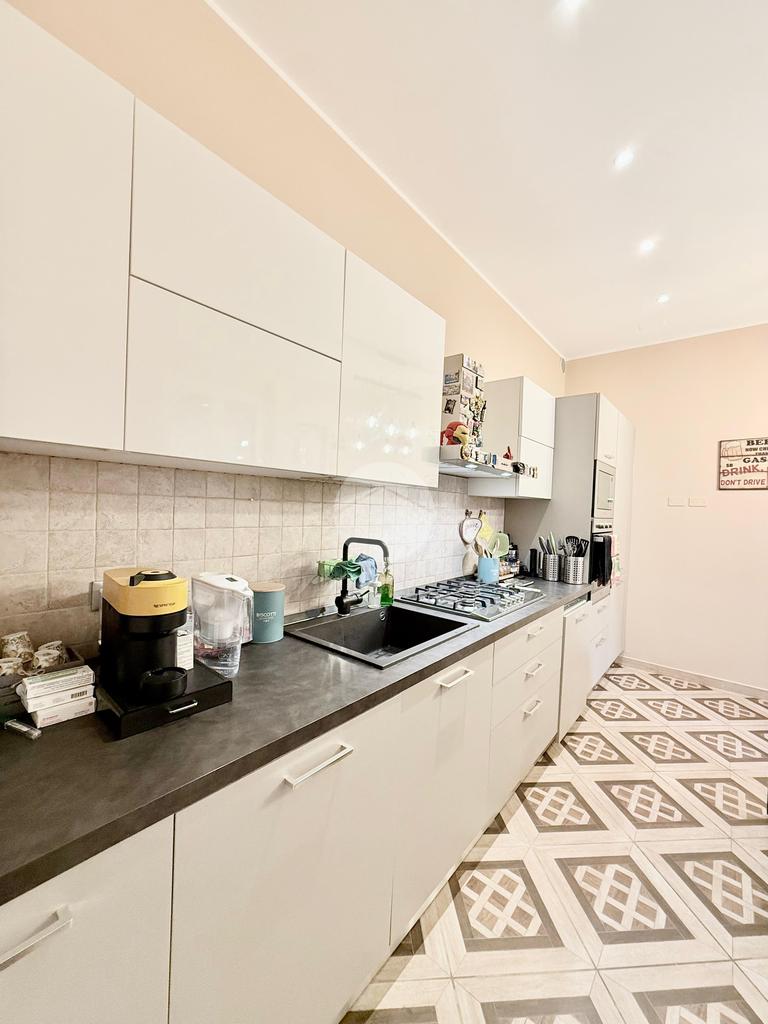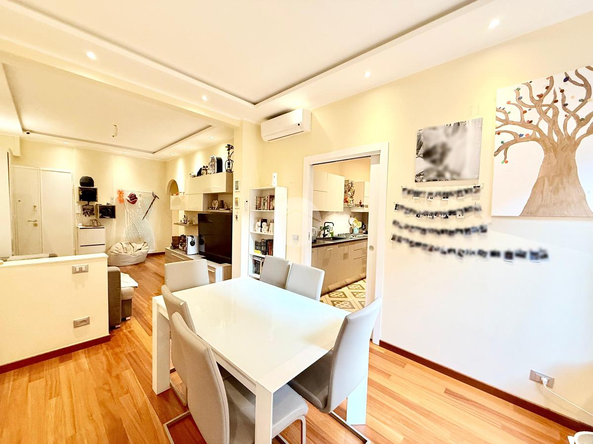 L'ingresso si apre su un ampio soggiorno e sala da pranzo, questo ambiente è dato dall'unione di 2 vani, ideale per momenti di convivialità, la porta scorrevole a scomparsa conduce alla cucina abitabile, dotata di un balcone che offre uno spazio funzionale e luminoso con affaccio verso sud.