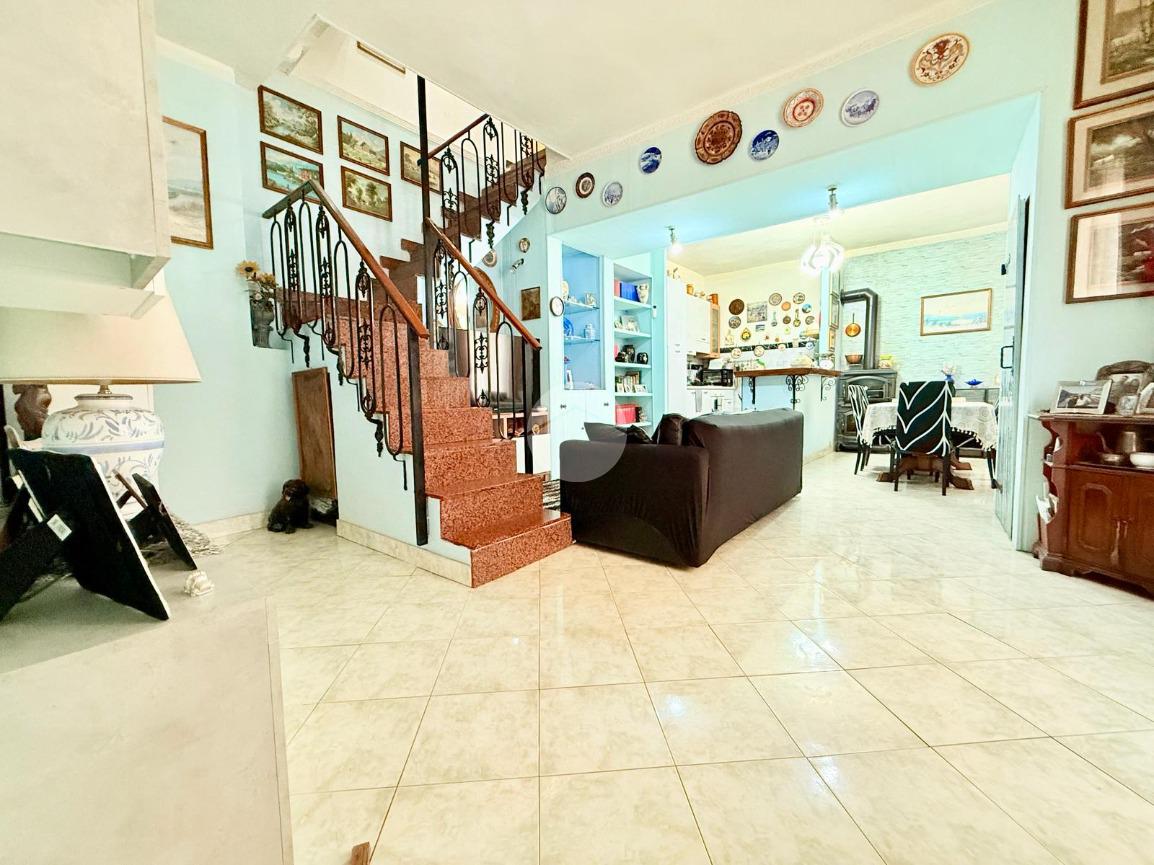 La zona giorno è composta da una spaziosa cucina abitabile e da un luminoso soggiorno, entrambi ben illuminati grazie a finestre con doppi vetri in alluminio. L’immobile è dotato di riscaldamento autonomo e di un suggestivo camino a legna, che dona calore e atmosfera agli ambienti.