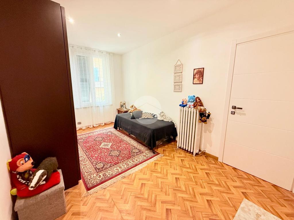 Al secondo piano, raggiungibile tramite scala interna, si sviluppa la zona notte e dei servizi. Troviamo un ampio bagno finestrato con box doccia, una lavanderia anch’essa finestrata e tre camere da letto di generosa metratura. Una delle camere dispone di porta finestra con accesso al secondo terrazzo, dal quale si gode una piacevole vista sull’area verde circostante.